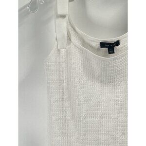 Ann Taylor White Textured Tank Top Bow Sz M NWT