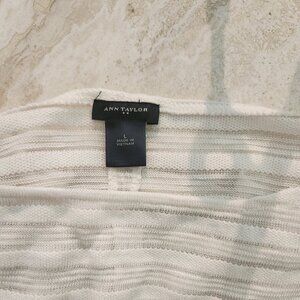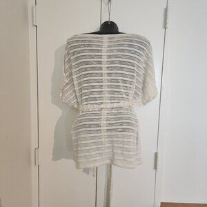 Ann Taylor White sheer stripe top with belt Size L, great for the oversized flowy look.