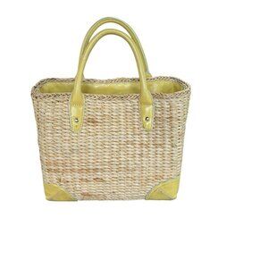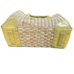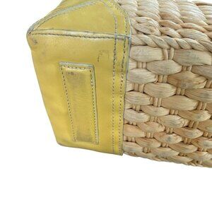 Ann Taylor Wicker and Yellow Leather Open Tote Bag Beach Summer