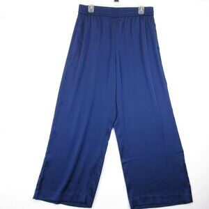 Ann Taylor Wide Leg Blue Pant Satin Women’s Size L Petite Pull On Elastic Waist