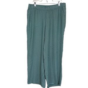 Ann Taylor Wide Leg Pull-on Pants Kelly Green/White Geometric Print NWT Size L