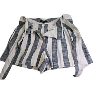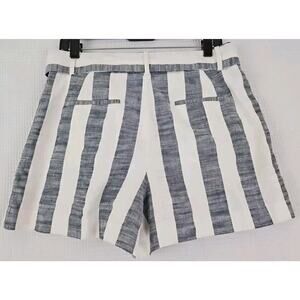Ann Taylor ~Woman Size 8~ White/Gray Striped High Rise Shorts Linen Blend Belted