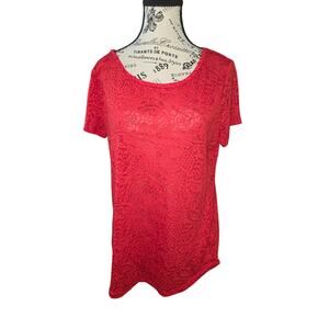 Ann Taylor Woman’s Red Short Sleeve Pullover Top Semi Shear Size L