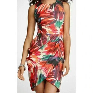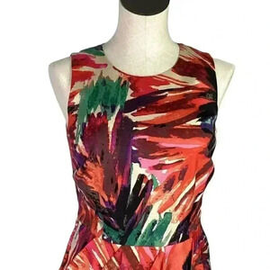 Ann Taylor Women 6 Abrstract Floral Cocktail Dress Multicolor Sleeveless Pleated