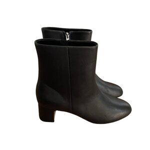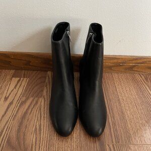 Ann Taylor Women 9.5M Black Leather Almond Toe Block Heel Ankle Booties.
