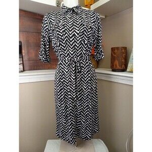 Ann‎ Taylor Women Black/white Chevron Button Down Collared Dress Size Small