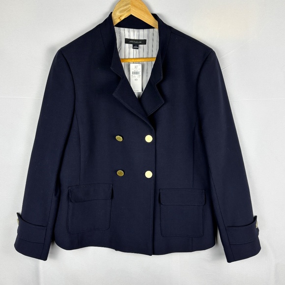Ann Taylor Women Cropped Double Breasted Blazer Jacket Sz 10 Navy Classic Preppy