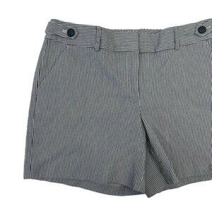 Ann Taylor Women Seesucker Striped Cotton Blend Chino Shorts Size 8 Gray &White