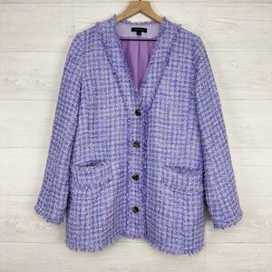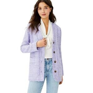 Ann Taylor Women Size 12 Fringe Tweed V Neck Cardigan Jacket Purple Button Front