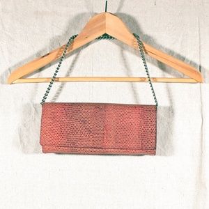 Details: Strong magnetic enclosure. Non-removable chain strap, approximately 20-inches long. Zippered interior pen pouch. Interior card holder with four slots. Fully lined.
