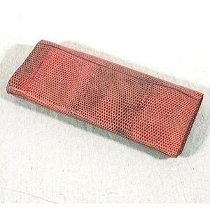 Feel: Supple thick leather with an animal skin finish. Interior is lined in a grosgrain-type fabric. Lightweight.