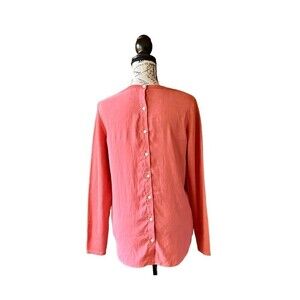 Ann Taylor Women salmon pink Pullover button up back Sweater s wool mixed media
