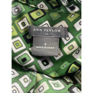 Ann Taylor Women’s 6 Button Up Shirt Satin Blouse Long Sleeve Green Geometric