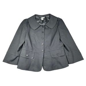 Stains in the front of the blazer, and on the sleeve. No fabric tag. Buttons feel loose