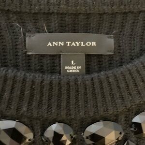 Embellished with polished stones for twilight intrigue and holiday sparkle, this wool-infused knit effortlessly intrigues. Crew neck. Long raglan sleeves. Drop shoulders. Ribbed neckline, cuffs and hem. 40% Viscose, 30% Nylon, 30% Wool Hand Wash, Lay Flat to Dry. Color: black