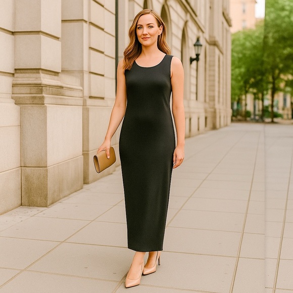 classic black column dress sleeveless tank maxi length minimalist chic style