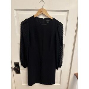 Ann Taylor Women's Black Swiss Dotted Sheath Sheer Sleeve Dress Size 00 Petite