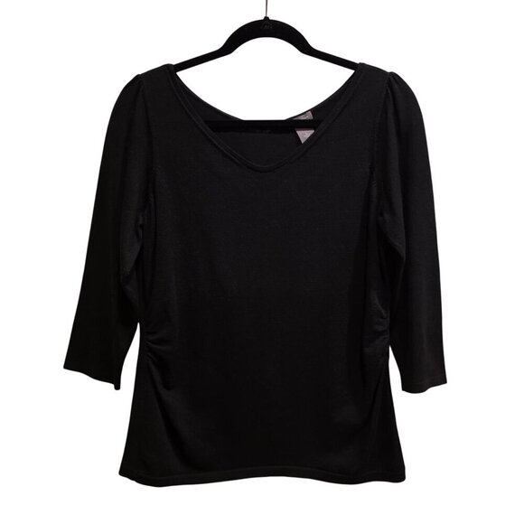 Ann Taylor Womens Black V-Neck Long Sleeve Ruched Quarter Sleeve Sweater Top L