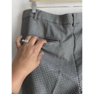 Elevate your wardrobe with these classic Ann Taylor pants in a stylish houndstooth pattern. Perfect for any occasion, whether it be business or casual, these pants are made with breathable and comfortable knit fabric, making them ideal for all seasons. The high-rise, straight-leg style pants feature a flat front and zipper closure, with a waist size of 38 inches and inseam of 26 inches.