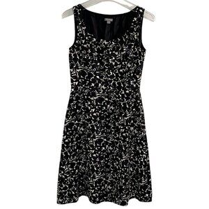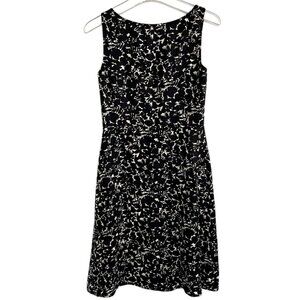 Ann Taylor Women's Black/White Silk Floral Sleeveless A-Line Dress SIZE-0