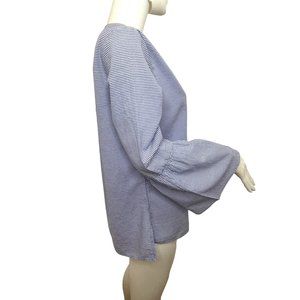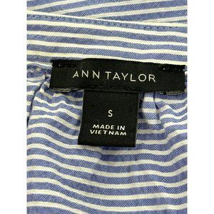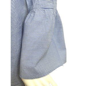 Ann Taylor Women’s Blouse Blue S Long Bell Sleeves Horizontal Mini Stripe Cotton