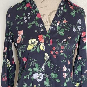 Ann Taylor Womens Blouse Top Sz XS Floral Long Sleeve Button down Collar Office