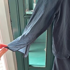 Elegant Ann Taylor blouse with a classic scoop neckline, banded hip, and sheer sleeves. Perfect for any occasion. Please note model is AI generated.