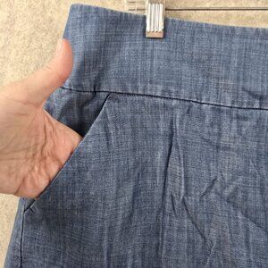 Ann Taylor Women's skirt in blue chambray features a mid-rise design and relaxed fit. Made with a lightweight cotton blend, it has convenient side pockets and a flat waistband for comfort. Pre-owned and in good condition, with minor wear. Carefully crafted in India for versatile styling.