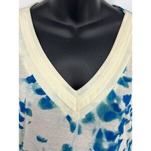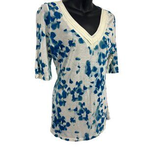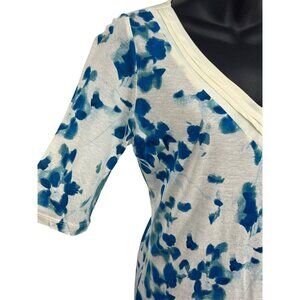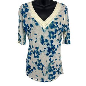 Ann Taylor Womens Blue Floral V-Neck Blouse Top Size Small S Short Sleeve New