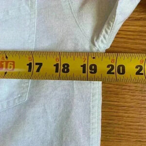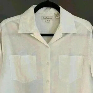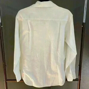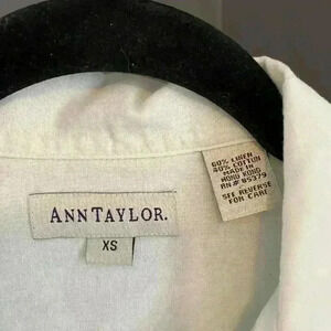 Elevate your wardrobe with this stylish Ann Taylor button-down blouse. The mint green color and solid pattern make it a versatile piece that can be dressed up or down for any occasion. The long sleeves and classic/fitted sleeve type provide a comfortable fit, while the collared neckline and button closure add a touch of sophistication. Made with a lightweight and breathable linen and cotton material, this blouse is perfect for travel, workwear, business, or casual wear. It comes in a regular fit and size XS, with accents of buttons and a solid design. This blouse is machine washable and was made in Hong Kong.