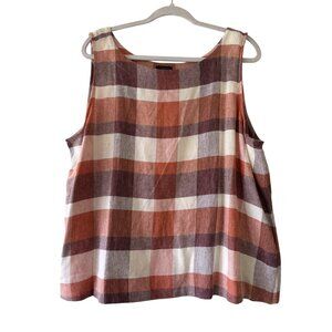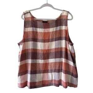 Ann Taylor Womens Checkered Sleeveless Plaid Tank Top XL Orange/Burgundy