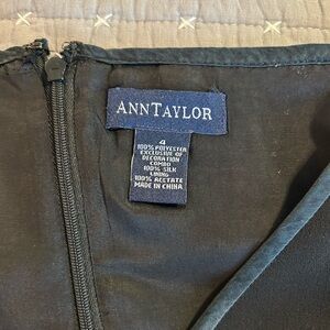 The perfect little black dress by Ann Taylor. Simple and classic. Dress is 100% polyester with 100% silk lining. Bow accent and trim feels like satin. I’m not completely sure. No back slit. Gently used. Excellent condition