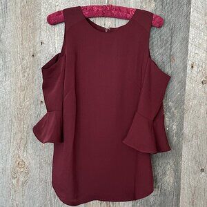 Ann Taylor Cold Shoulder Blouse - Maroon