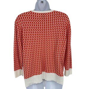 Ann Taylor Womens Coral & White Patterned Button-Up Cardigan Sweater L