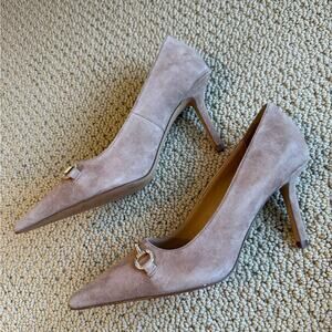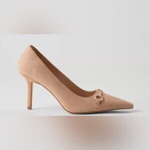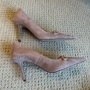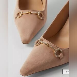 Ann Taylor Women’s Crystal Chainbit Nip Toe Suede Pump Beige Size 6