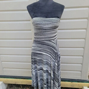 Ann Taylor Womens Dress Black White Sheath Striped Casual Strapless Stretch S