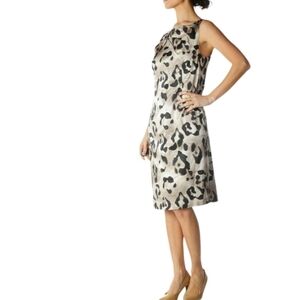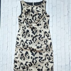 Ann Taylor Womens Dress Leopard Print Sleeveless Sheath Silk Cotton Neutral 8
