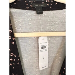 This Ann Taylor Women's Wrap Dress in black is adorned with a delicate pink floral print, making it perfect for both casual and semi-formal occasions. The flattering wrap design features a tie waist for a customizable fit and flowy short sleeves that add a feminine touch. The midi-length hemline makes it versatile for different settings, whether for a daytime outing or an evening event. Available in size 0, this dress is both stylish and comfortable, offering effortless elegance for your wardrobe.
