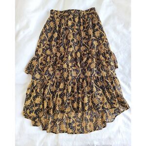 Ann Taylor Womens Floral Botanical Layered Tiered Ruffle Midi Skirt Size 2