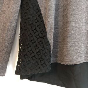 Ann Taylor Women's Gray Long Sleeve Knit Crochet Back with Black Lining Top Size