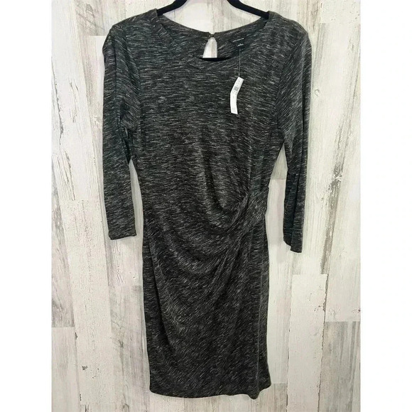 Keywords: Ann Taylor, sheath dress, gray dress, 3/4 sleeve, faux wrap, ruched waist, keyhole back, soft knit, casual dress, formal dress, women's fashion, elegant dress, versatile dress, new with tags.