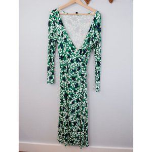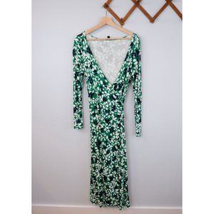 Ann Taylor Womens Green & White Floral Stretch Wrap Dress, size 10