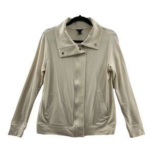 Ann Taylor Womens Jacket Coat Beige Zip Up Stretch Mock Neck Pockets M