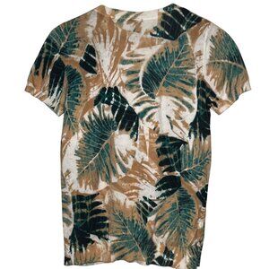 Ann Taylor Women's L Tropical Leaf Button-Front Short Sweater 100% Cotton Office