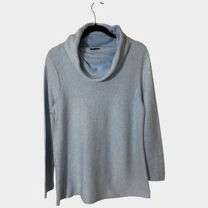 Ann Taylor Womens Large Cowl Neck Sweater Light Blue Tight Knit Long Sleeve