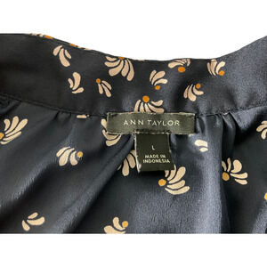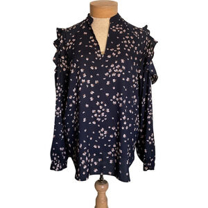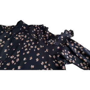 Ann Taylor Women's Blouse Size Large Navy Floral Cold Shoulder Sleeve Polyester