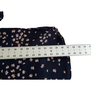 Ann Taylor Women's Large Navy Blue Blouse Floral Cold Shoulder Sleeve Polyester