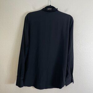 Ann Taylor Womens Large Tall Black Lace Yoke Long Sleeve Blouse Front Neck Tie