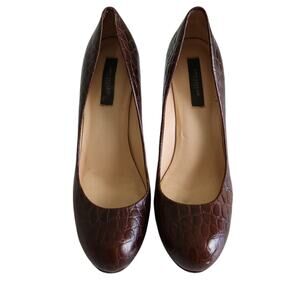 Ann Taylor Womens Leather Pumps Size 8 Faux Croc Embossed Brown Classy Heels