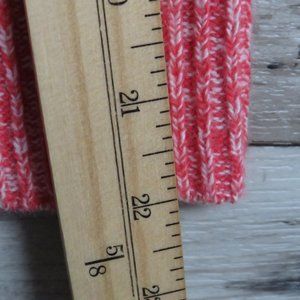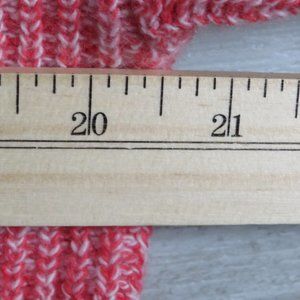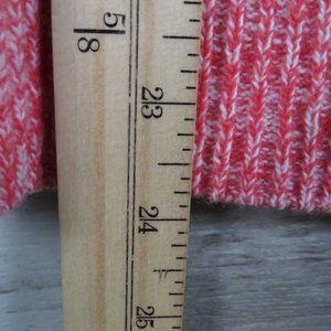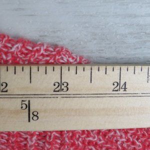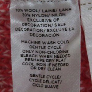 Pre-Owned, Excellent Condition! 70% Wool/30% Nylon. Beautiful Coral & White Blended Color on Ribbed Crochet/Knitted Sweater, Black Bow-Tie Keyhole Design.